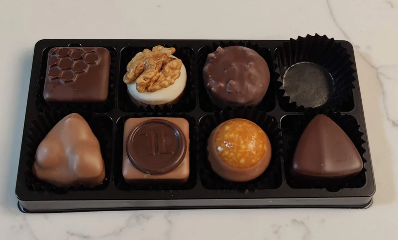 小小阿立给我们的巧克力有两款是花俏品牌(very fancy)。昨天先品尝这款盒装的fancy巧克力: