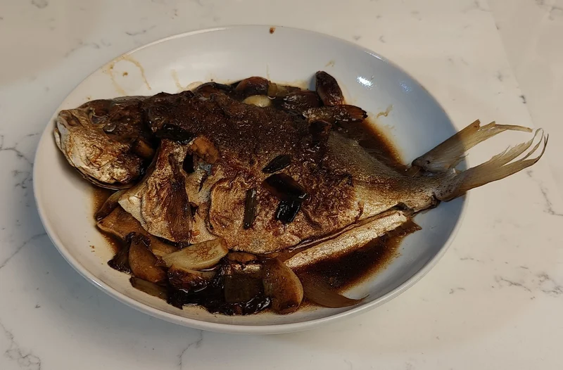 杭帮菜谱几经推敲(也受大华超市食材限制),定稿十款菜,共11盘。其中红烧金鲳鱼要2条,一条被阿立三世和小小公主包圆了。