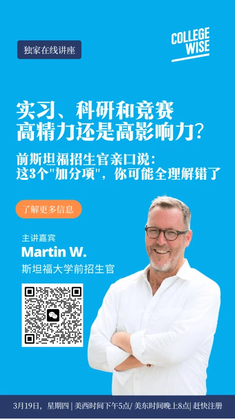 在 Collegewise 的这场直播中,我们邀请了一位曾在斯坦福大学生办公室工作多年的资深招生官,用他亲历的评审视角,还原申请背后的真实逻辑。但更重要的,不是“他讲了什么”,而是: