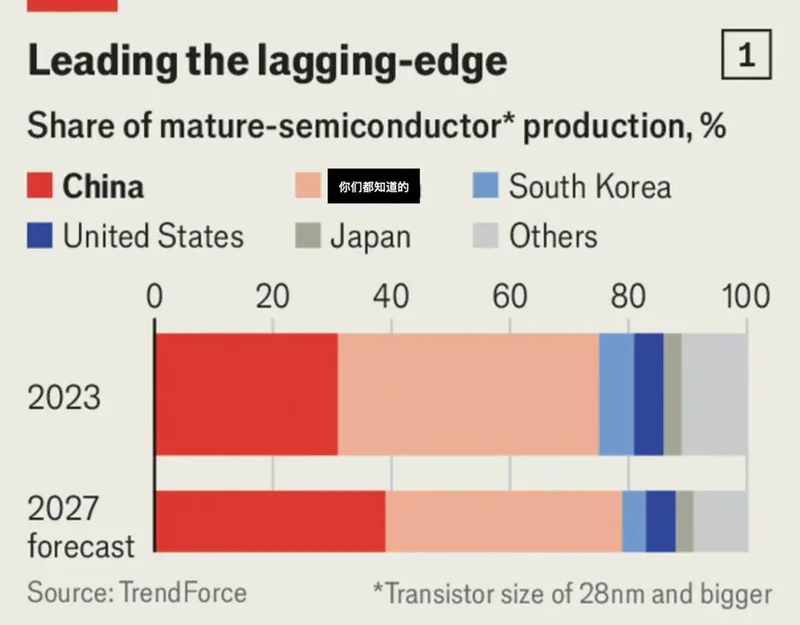 他们封锁了AI高端芯片,但却拱手把掌控全球新能源汽车、物联网、家电和工业控制所需的底层芯片的命脉给了中国,而一旦中国在28nm及以上节点占据了全球过半的产能,西方任何试图在汽车电子、工业控制领域对中国进行供应链脱钩的尝试,都将面临全行业成本失控甚至停工的毁灭性打击——