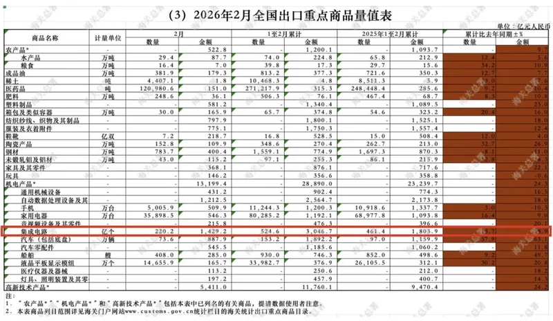 2026年3月,中国海关总署抛出了一份关于半导体出口的数据: