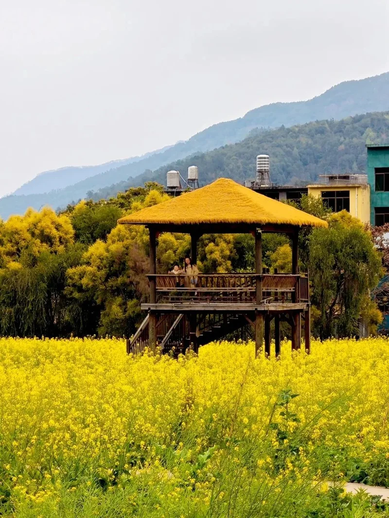 春风把这片花田『回暖』,发光的油菜花把山间铺上金色的盛装。溪源村给人的感觉是安静松弛的田野,风穿过花梗的沙沙声、溪水潺潺的流水声,都听得清清楚楚。