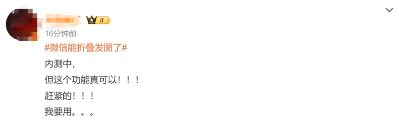 而对于此次折叠发图功能,客村小蒋在微博上与网友互动时称:“你已经用上了?我还没有。”