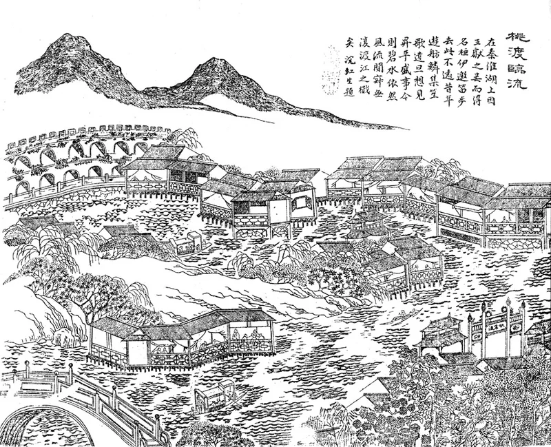 桃渡临流:夫子庙利涉桥畔古桃叶渡,相传是东晋王献之妾桃叶渡秦淮处