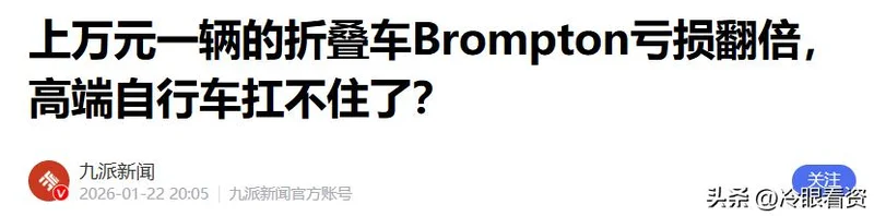 而同期英国折叠自行车品牌Brompton公布的2025财年数据显示,其全球销量同比下滑7.5%,亏损额较上年翻倍,Trek品牌2024年净亏损更是从205.37万英镑扩大至734.98万英镑。
