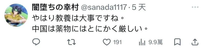 与此同时,日本网友纷纷点赞中国的禁毒力度。
