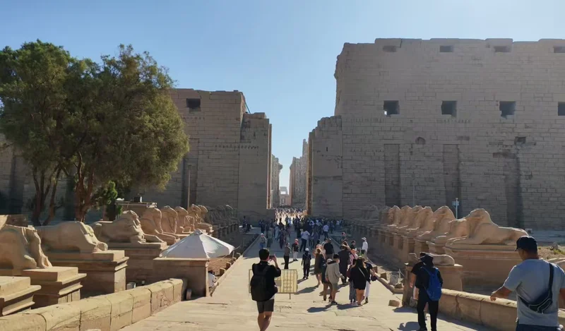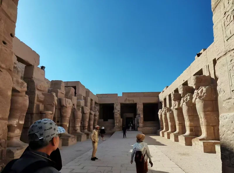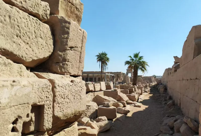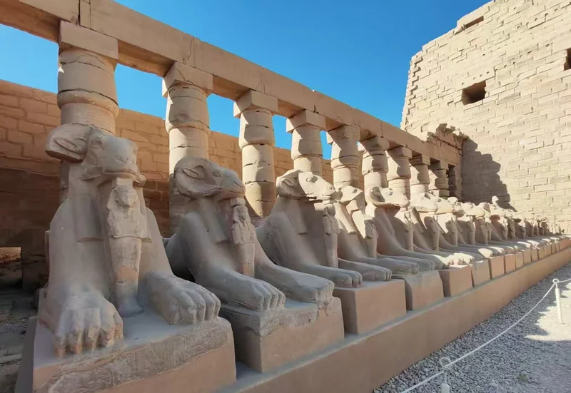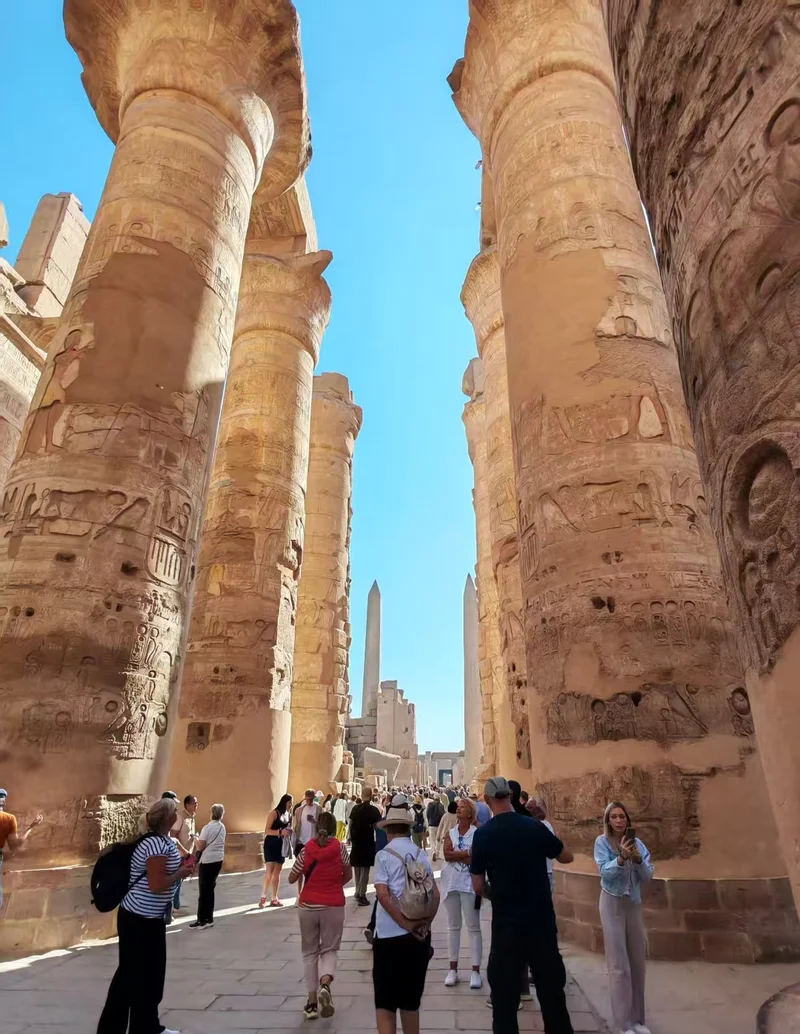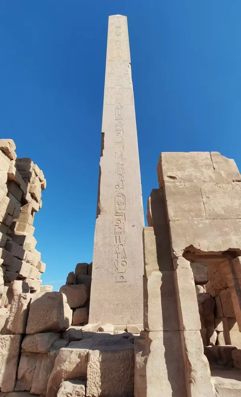 卡尔纳克神庙,这座位于卢克索(古底比斯)尼罗河东岸、世界现存规模最大的古埃及宗教建筑群,便踏入一座跨越两千余年的石质时光长廊。它以供奉阿蒙-拉神为主,搭配穆特女神、孔苏月神的附属神庙。这座神庙始建于中王国法老辛努塞尔特一世时期,前后有三十多位法老接力扩建,最令人称奇的便是哈特谢普苏特女王立下的方尖碑——这位古埃及唯一的女法老,为彰显自己“神之女”的正统性,用一整块花岗岩打造了高达30多米的方尖碑,碑身铭文记载着她对太阳神阿蒙的崇敬,也藏着她执政期间国泰民安的盛世图景,如今这座方尖碑仍是埃及境内最高的方尖碑,静静诉说着这位传奇女王的功绩。