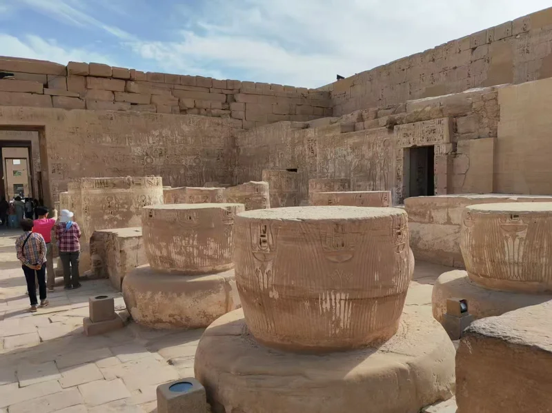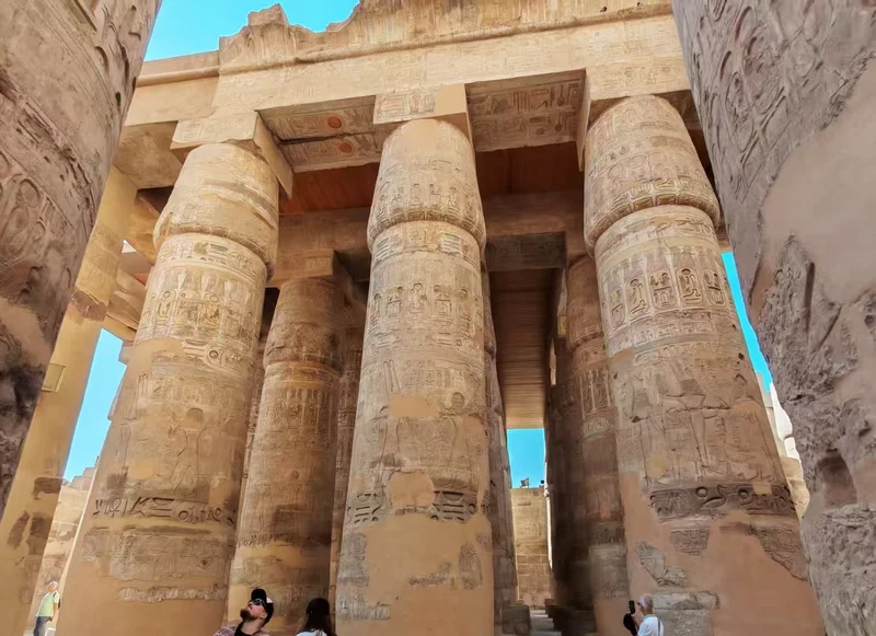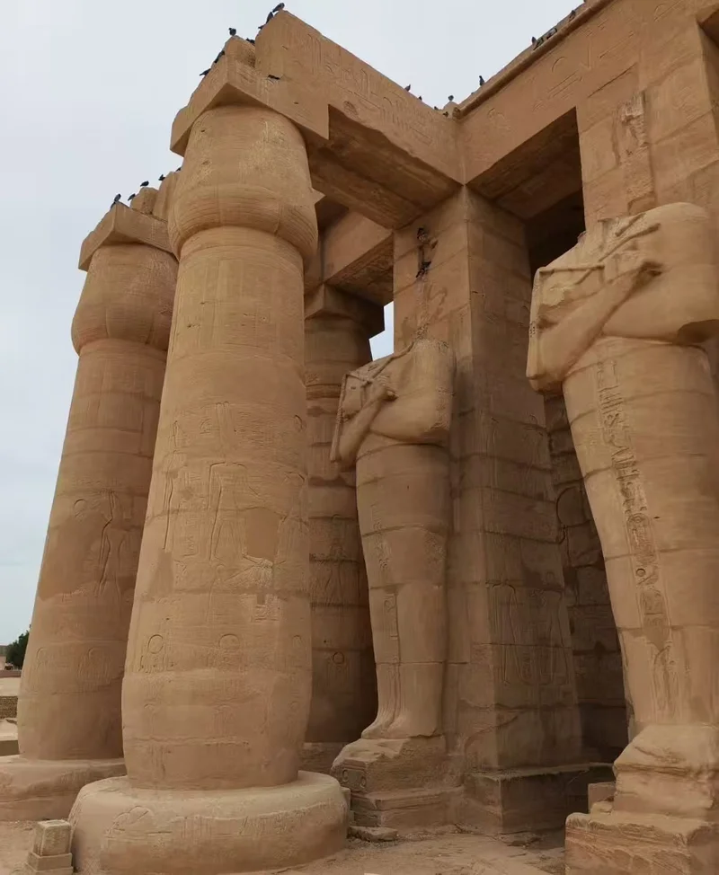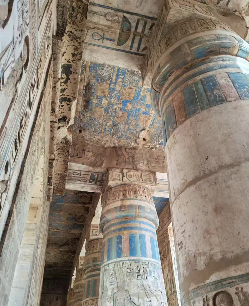 神庙的134根巨型纸莎草柱组成的柱厅,被誉为“太阳的轨道”,古埃及人相信纸莎草是太阳生命力的象征,柱厅的设计暗合尼罗河畔的丰饶景象。