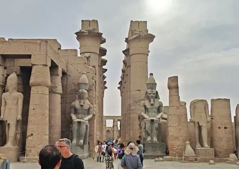 与卡纳克神庙相连的卢克索神庙,则藏着奥佩特节的古老传说——每年这个盛大节日,太阳神阿蒙会从卡纳克神庙溯尼罗河而上,前往卢克索神庙探望妻子穆特,神庙墙壁上的浮雕便生动刻画了这一场景。这里的塔门由拉美西斯二世修建,壁上镌刻着他与赫梯人卡迭石战役的辉煌战绩,而门前原本成对的方尖碑,如今只剩一座伫立,另一座则被运往巴黎协和广场,成为文明交融的见证。