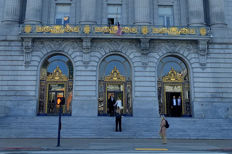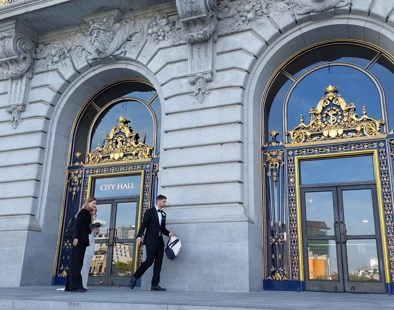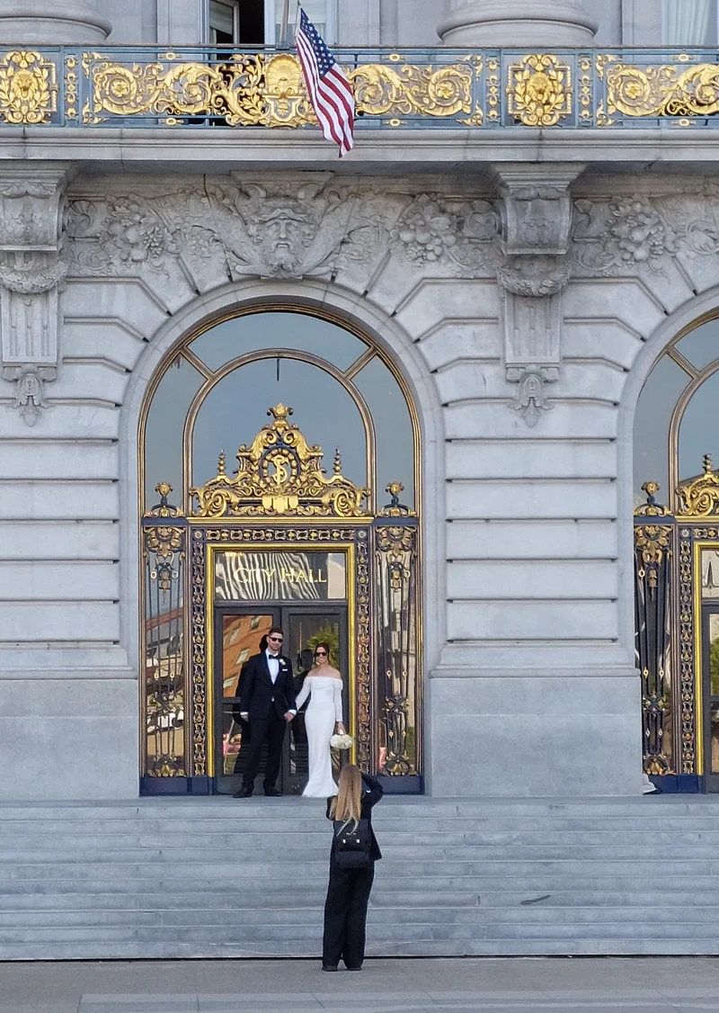 旧金山市政厅是一处大名鼎鼎的婚纱摄影胜地。它拥有令人惊叹的布杂艺术风格建筑,内部空间宏伟壮观、布局对称,且光线充足、通透开阔。这里被公认为全美最具浪漫色彩和标志性的婚纱摄影取景地之一,所以, 它往往人潮涌动。