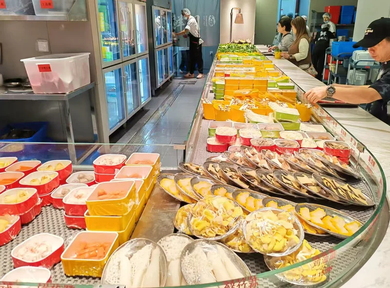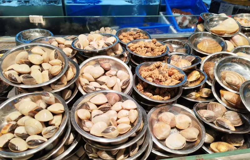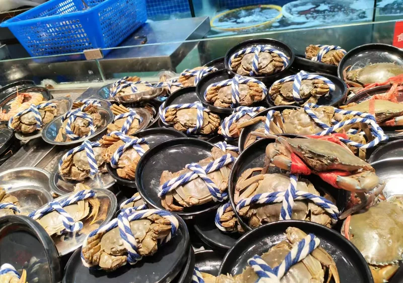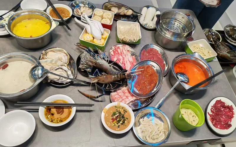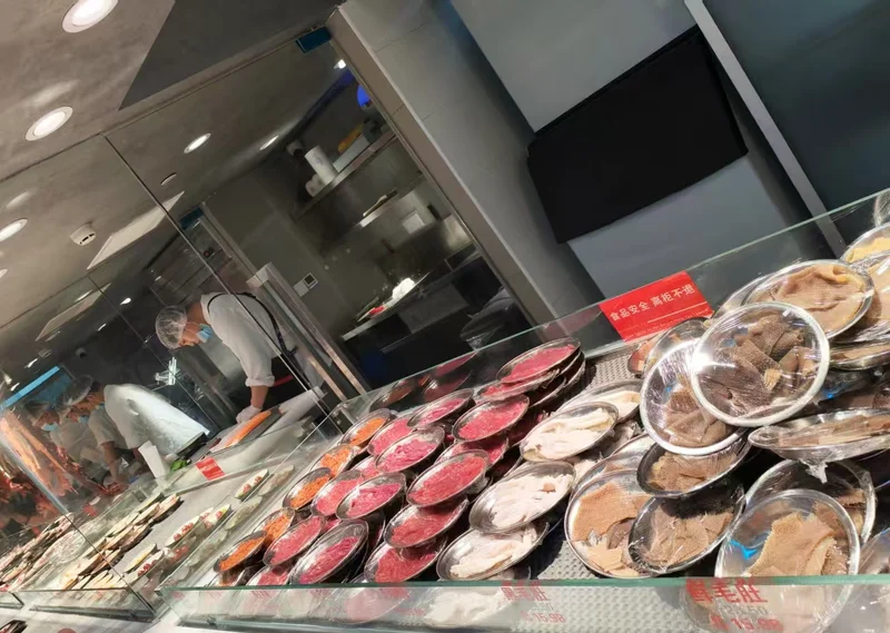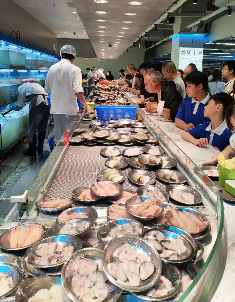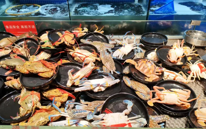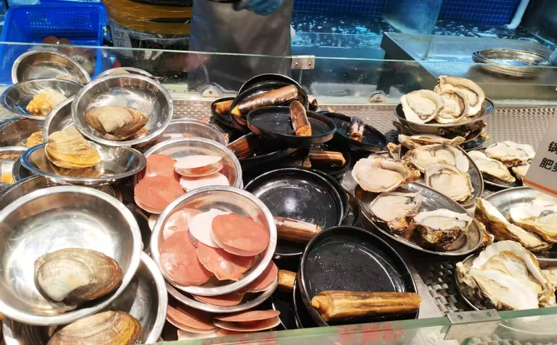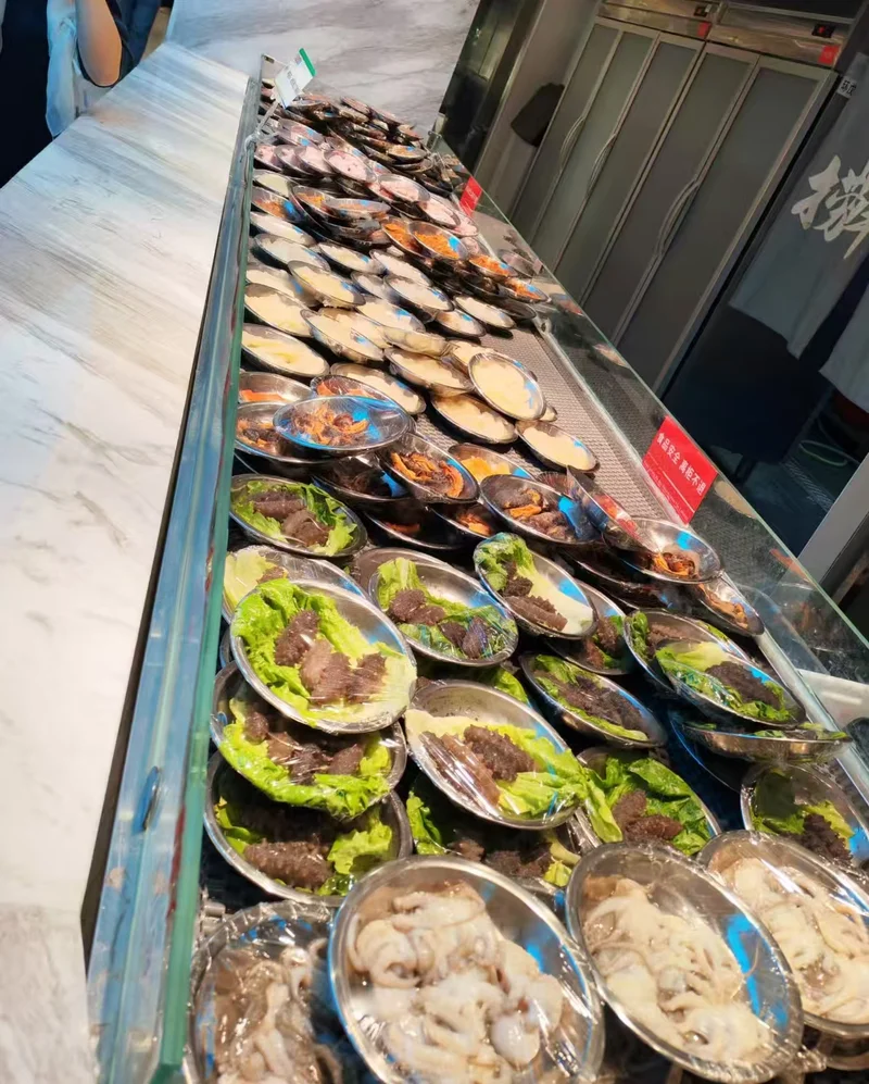 “捞鲜门”重在食材新鲜,品种多样,虽是主打海鲜,却还有牛肉等。食物琳琅满目,多不胜数,明码标价,自由取食,非常方便。