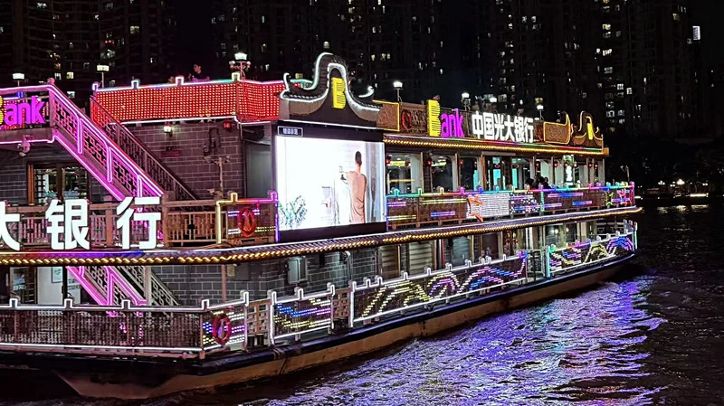 珠江夜游是广州标志性夜游体验,乘坐游船沿珠江黄金水道航行,观赏两岸从历史建筑到现代 CBD 的璀璨灯光,航线多串联广州塔、海心沙、猎德大桥、星海音乐厅、粤海关大楼等地标,航程常规 60 分钟左右。(摘自豆包)