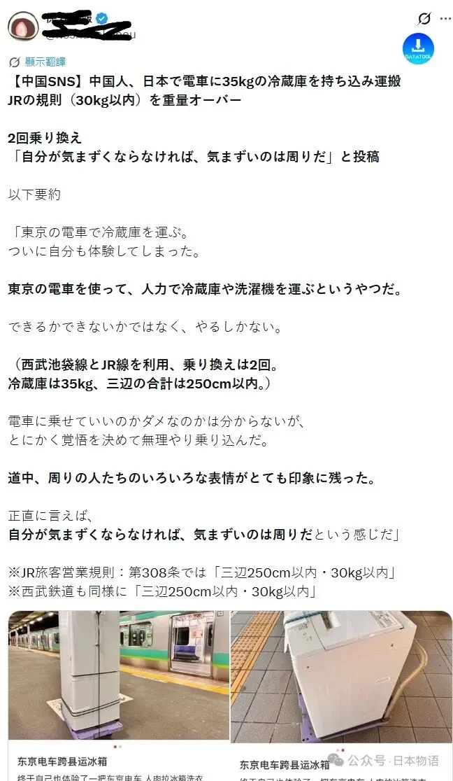 这件事真正引发讨论的,不只是“搬冰箱洗衣机”,而是三层冲突:第一层:规则边界日本的规则其实很明确——30kg以内,但现实里很少有人真的“去称重执法”。这就留下了灰区:不是不能做,而是“不应该做”。第二层:社会默契日本社会更依赖一种“无形规则”——不给别人添麻烦(迷惑をかけない)。这个行为的问题,不在“违法”,而在“破坏空气”。第三层:价值观冲突(也是这条内容能传播的核心)那句:“只要我不尴尬,尴尬的就是别人” 引发日本网友热议……