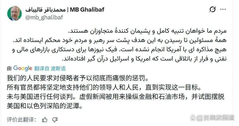 伊朗伊斯兰议会议长卡利巴夫否认参加谈判