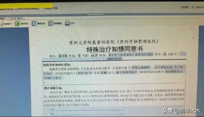 紧接着,还有疑似治疗知情同意书曝光,张雪峰原名“张子彪”,年龄41岁,上面显示诊断为“呼吸心脏骤停”,需要进行仪器治疗,家属同意书。