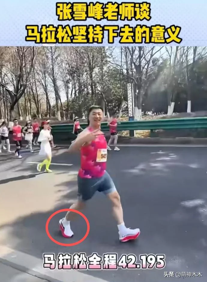 有网友发现张雪峰日常的跑步鞋确实是一双带红色的跑鞋,细节对上了。