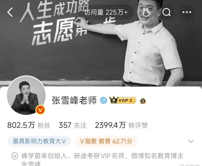 中国教育网红、考研名师张雪峰去世,终年41岁。
