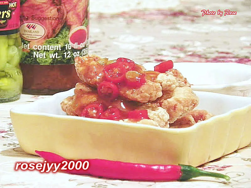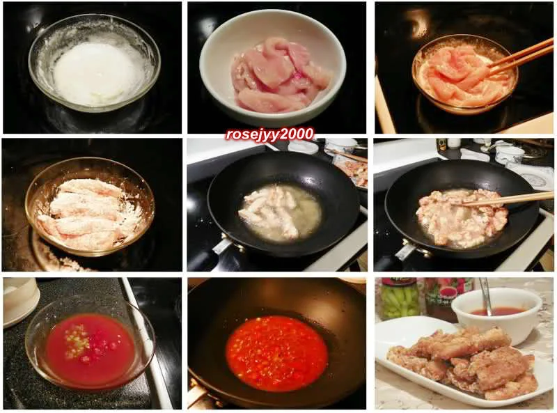 芡汁:泰汁3大勺、新鲜辣椒2条、瓶装泡椒5条、茄汁1/2大勺、柠檬汁1/2小勺、白糖1大勺、白醋1/2大勺、麻油1小勺、清水1/4杯。