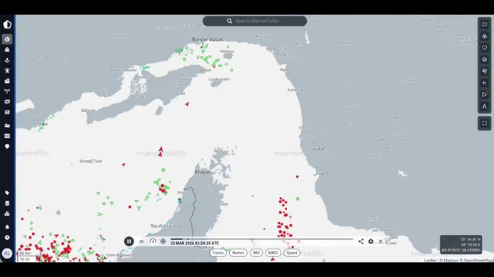 根据MarineTraffic周二早些时候发布的数据,自周一以来已有9艘船只通过了霍尔木兹海峡。