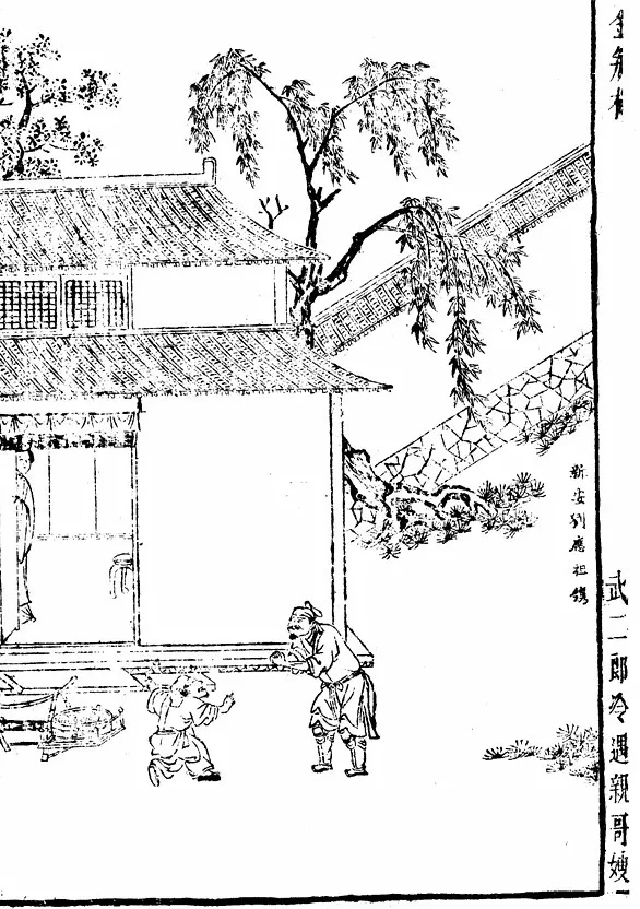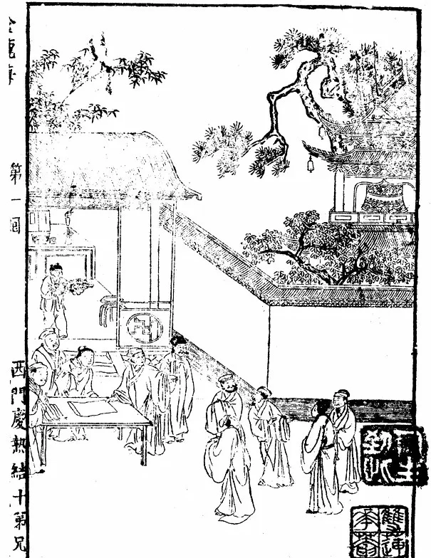 大宋徽宗皇帝政和年间,山东省东平府清河县中,有一个风流子弟,生得状貌魁梧,性情潇洒,家资颇丰,年纪二十六七。这人复姓西门,单字庆。父亲西门达,原走川广贩药材,就在这清河县前开着一个大大的生药铺。父母早逝,他不甚读书,终日闲游浪荡。与他最合得来的两个朋友,第一姓应名伯爵,表字光侯,专在本司三院帮嫖贴食,浑名应花子。第二个姓谢名希大,亦是帮闲勤儿,会一手好琵琶。