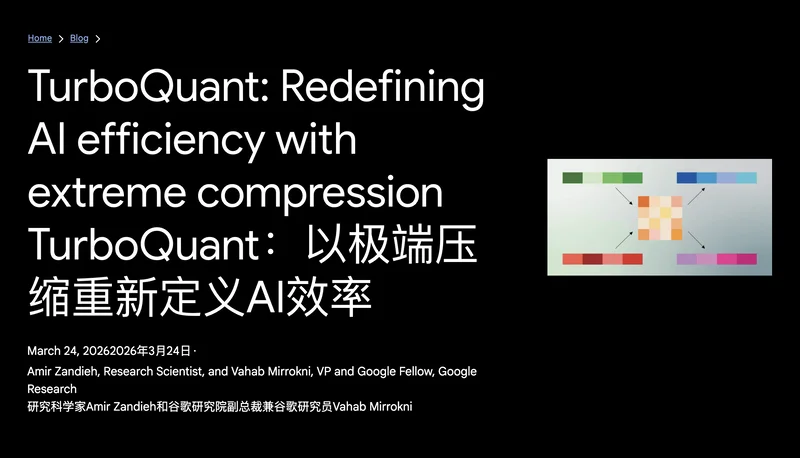 就在昨天(3 月 25 日),谷歌发布了一项直接引起美光、SK 海力士等存储巨头股价下跌的技术——TurboQuant。