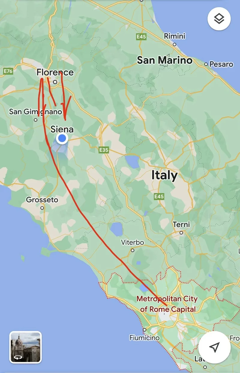 一小时后,再坐上火车,前往这次旅行的第一站:Siena。黄昏时分终于住进了古色古香的旅馆。