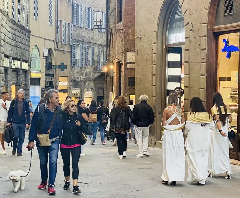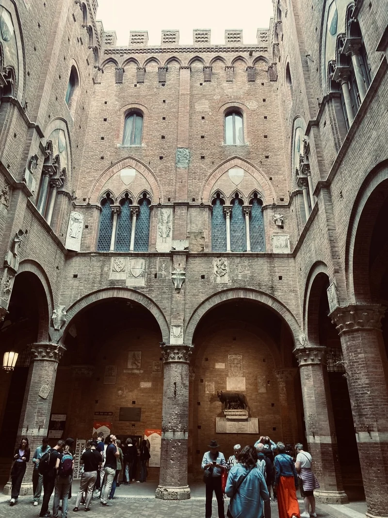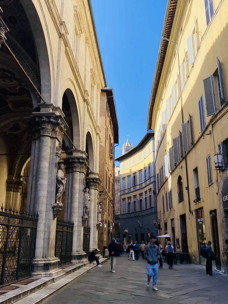 古城遗址保护得非常好。没有因为要追求现代化,而去野蛮地毁掉它;没有在粗暴地毁掉之后,心血来潮地再去仿造一个,…。沙林贝尼宫(Palazzo Salimbeni),为至今仍在经营的银行中最古老的一座,也是锡耶纳银行集团的总部。