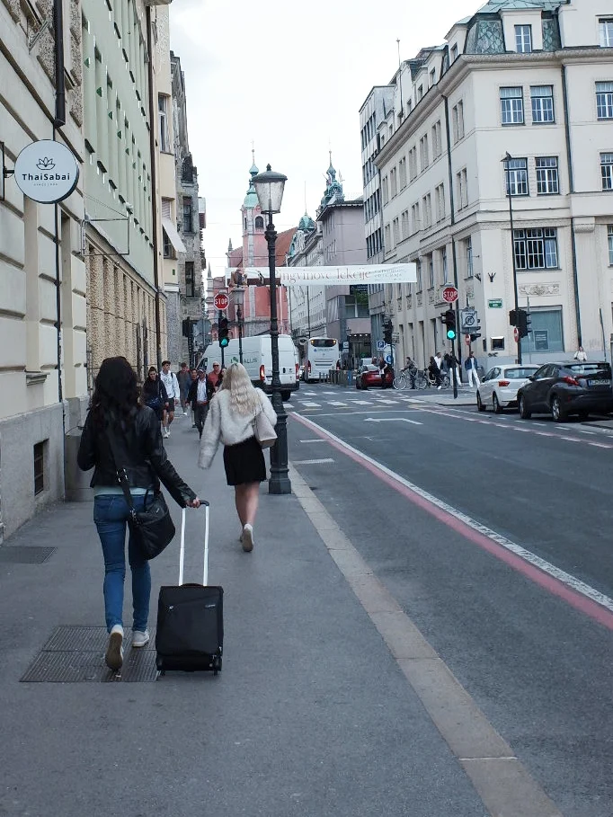 小城不大從公交站,拖着行李箱走路即可抵达市中心,前面的女士和我同機從慕尼黑飛來
