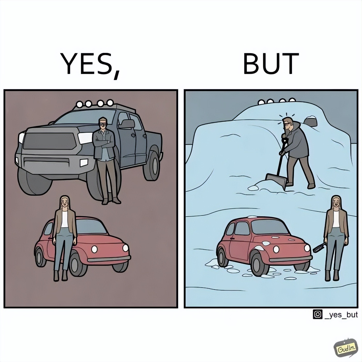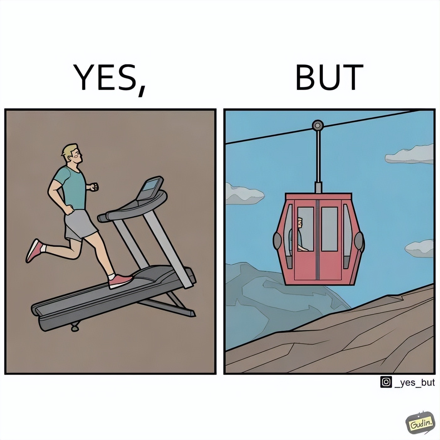 最近插画师Anton Gudim的新作又在国外火了。他的“Yes, But”系列漫画,用最简单的两格画面,戳穿了现代人最不敢面对的日常矛盾。