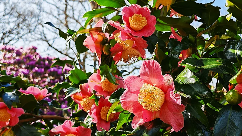 从三月份开始,一进花园首先映入你眼帘的是纯洁清雅的白玉兰花,和艳丽怡人,芳香淡雅的粉/紫玉兰花。再往前走就可以看到草地上,树林中一片片金黄黄的水仙花。沿着幽静小道身心立刻会被两侧不同颜色和品种的山茶花拥抱。