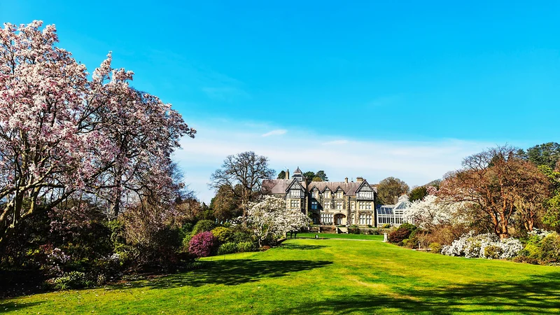 GARDEN) 坐落在斯诺登尼亚山麓,地处北威尔士,占地80英亩。收藏了众多国家级植物收藏。既有来自世界各地的名贵植物, 又有自己独立培养的杂交品种。这里拥有英国最早、最宏伟的金链花拱门(建于1880年左右),以及一些英国最早从中国引进的木兰花(19世纪末)。