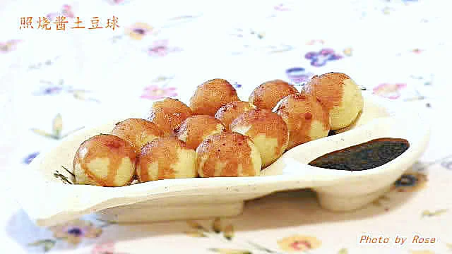 五、将涂料扫在土豆球表面,放入预热的烤箱,约400°F,5~8分钟。