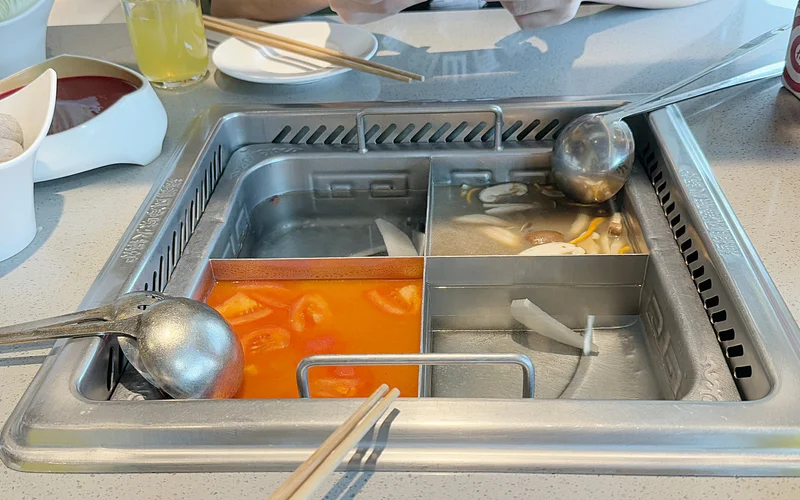 我孙女特别爱去海底捞,她不为吃只为玩,有小姐姐陪着在玩具室玩多爽多开心呀,我们想吃火锅时一般都选择它。这店有几种火锅底汤任君选择,四宫格形式,我们爱选番茄汤底和麻辣汤底,从食材来讲,还算新鲜,花样也多,从服务来讲所谓的无微不至,发围裙给每一个用餐的客人包括小孩,还有女士护手、美甲和洗眼镜,就餐环境还好,位置宽松,价格嘛,属于中高端水平,我们一般点团购套餐外加自选食材。四人餐大约在三百元上下。