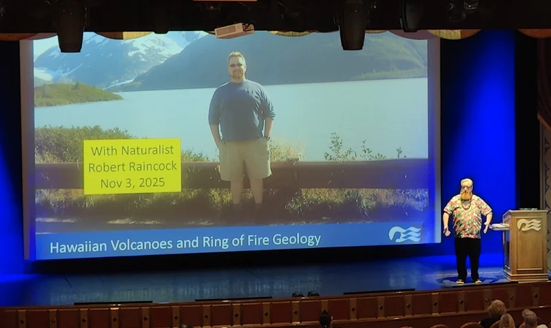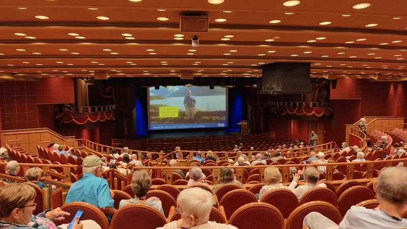 游轮每日简报,今天有两个讲座。第一个讲座是叫Hawaiian Volcanoes and Ring of Fire Geology(夏威夷火山和环太平洋火山带地质学)。看火山是我们夏威夷游轮游的重头戏之一,必须去听。