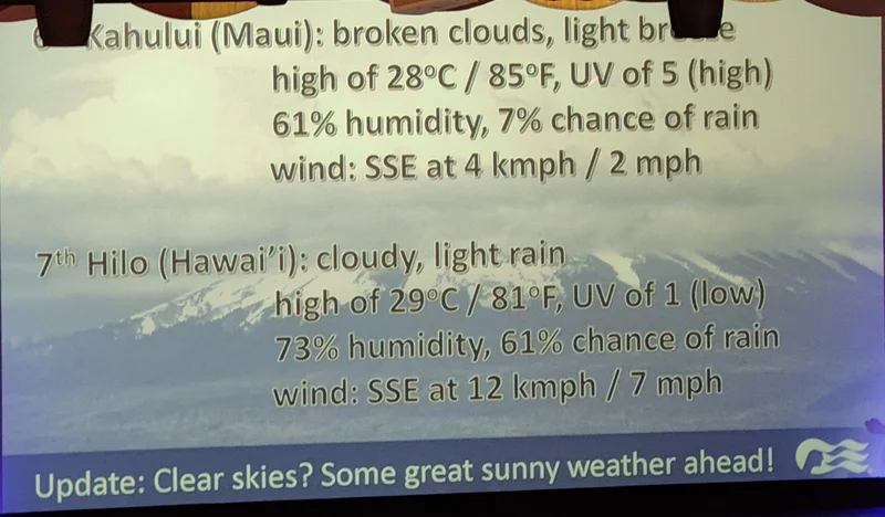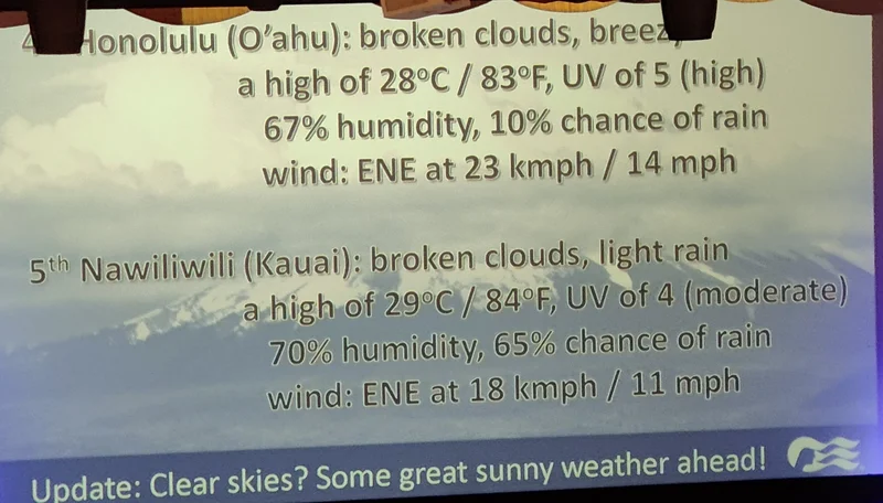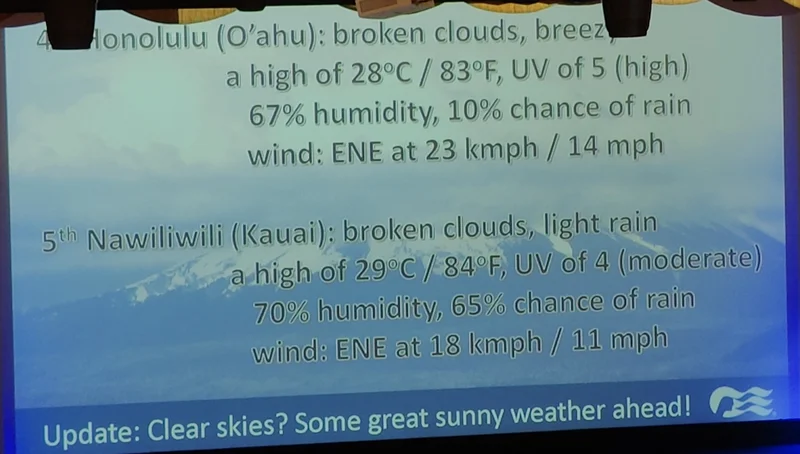 游轮停靠夏威夷各岛的气象预报: