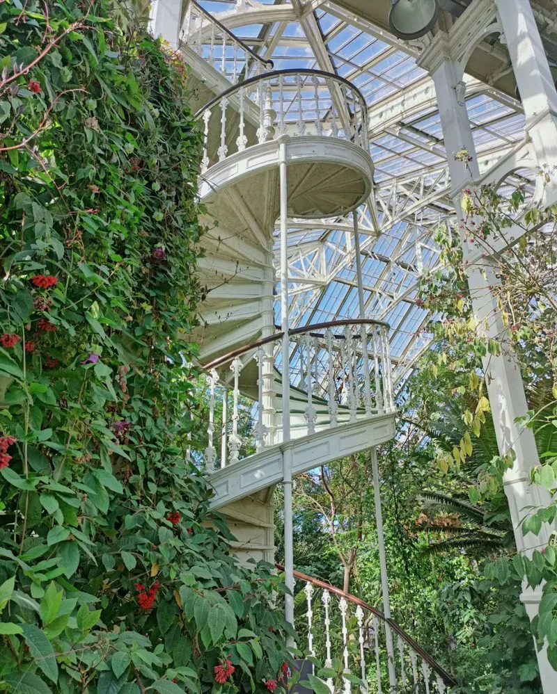 透过楼梯的缝隙俯视绿意,