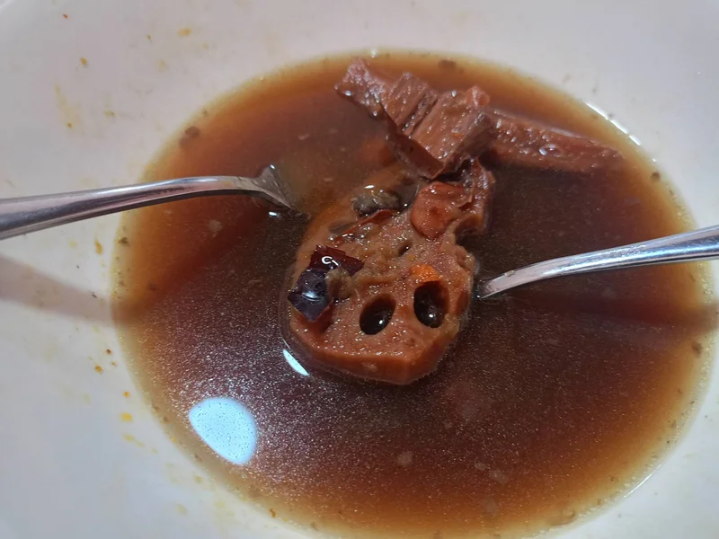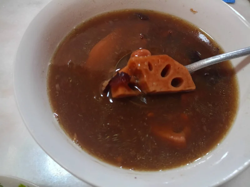 莲藕汤里面还有珍珠豆,香菇脚,红枣等,营养不少。
