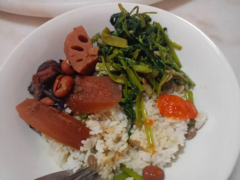 昨天晚上太太在厨房准备今天的菜时对我说:我准备了一锅‘莲藕汤’,但还少一样青菜,想吃什么菜呢?
