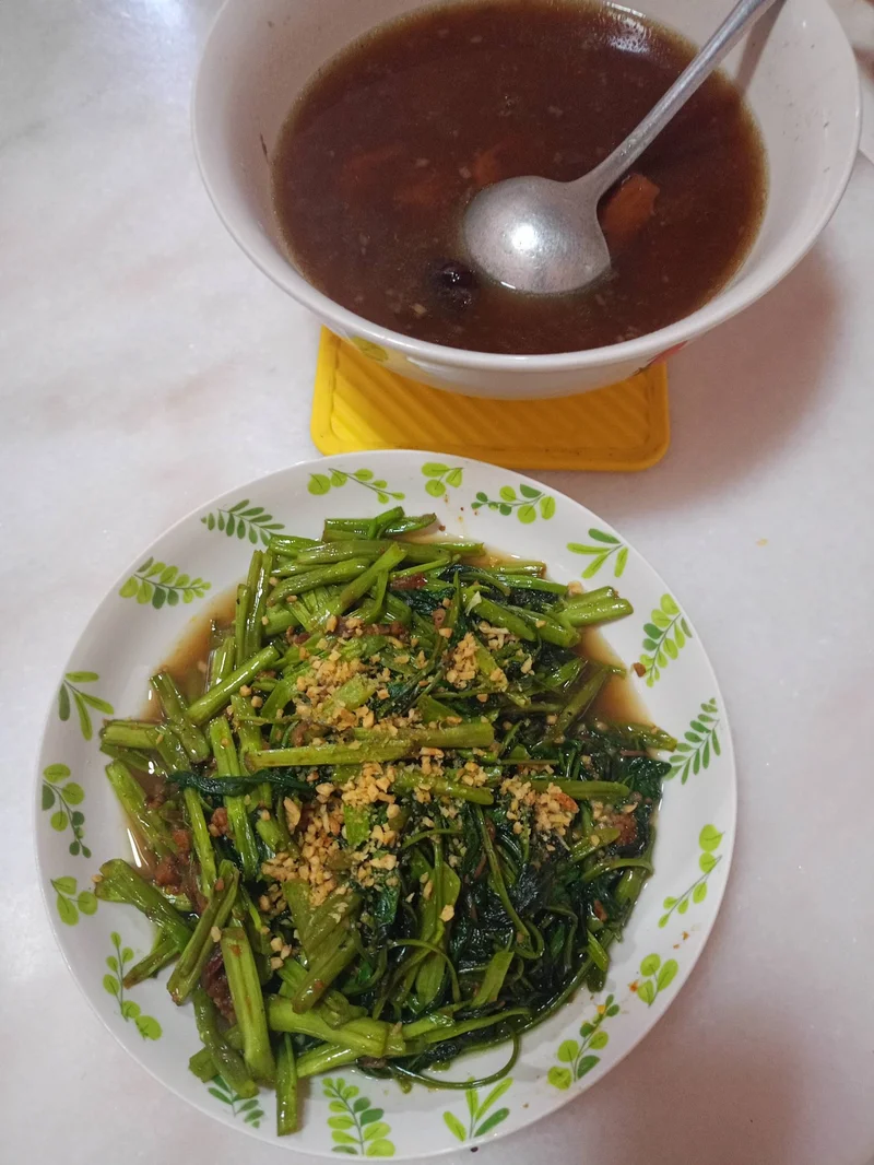 太太又建议吃空心菜,孩子马上说好👌。我是什么菜都行,方便大家就好,这样就决定了。