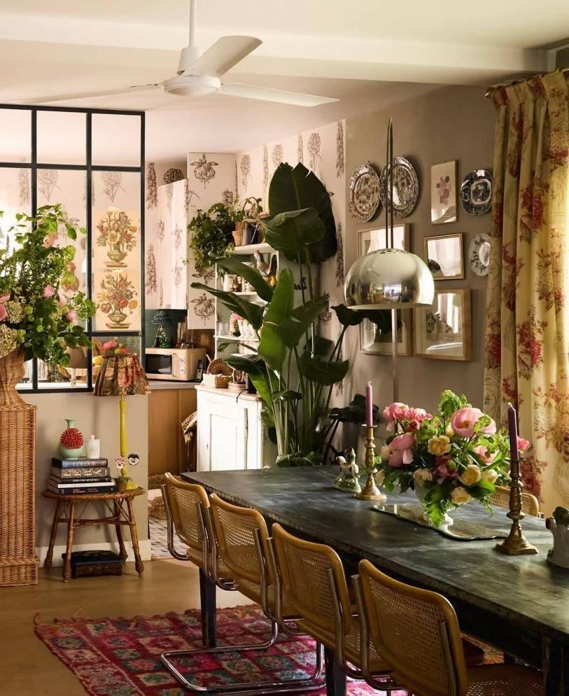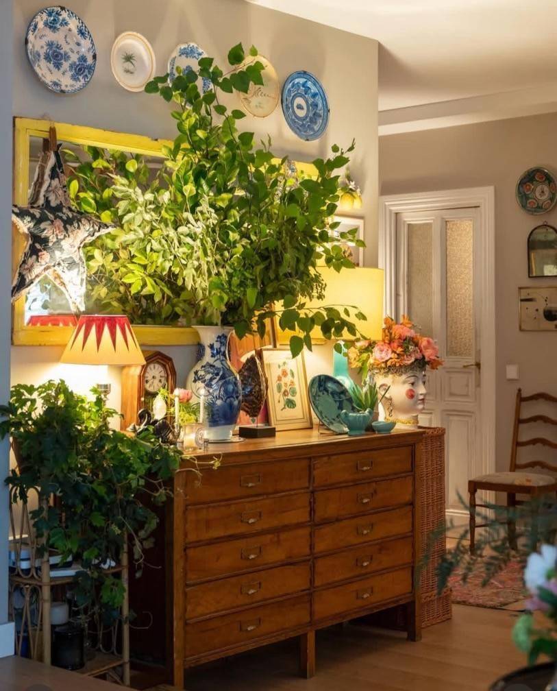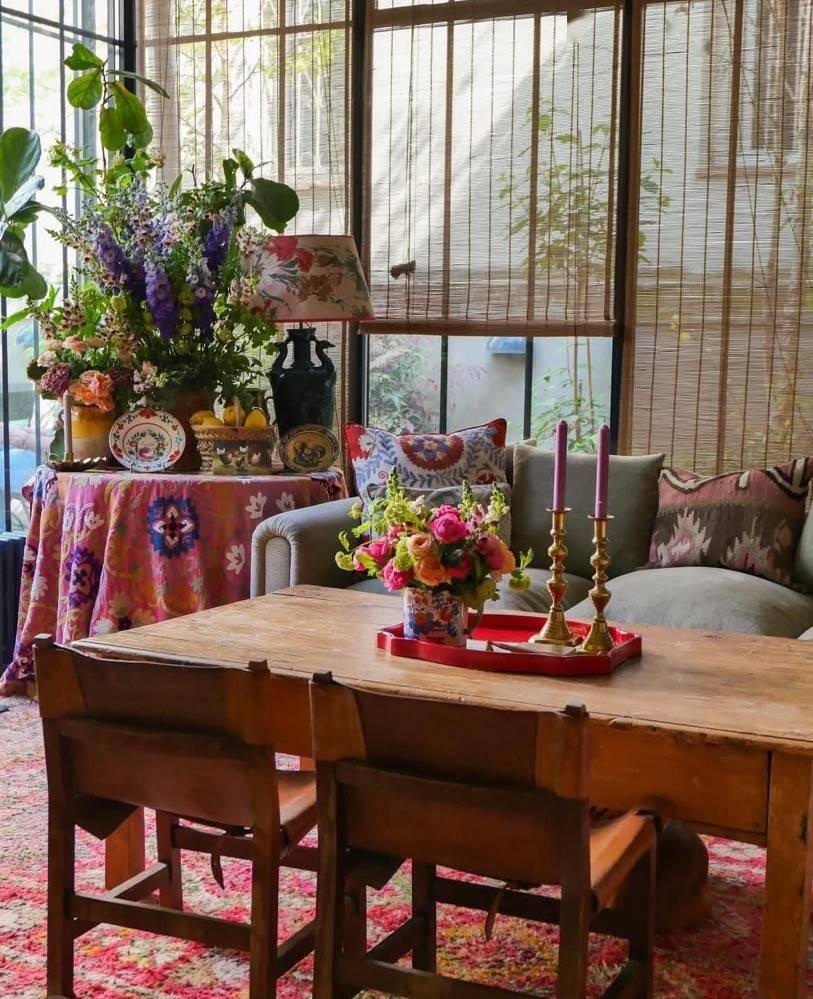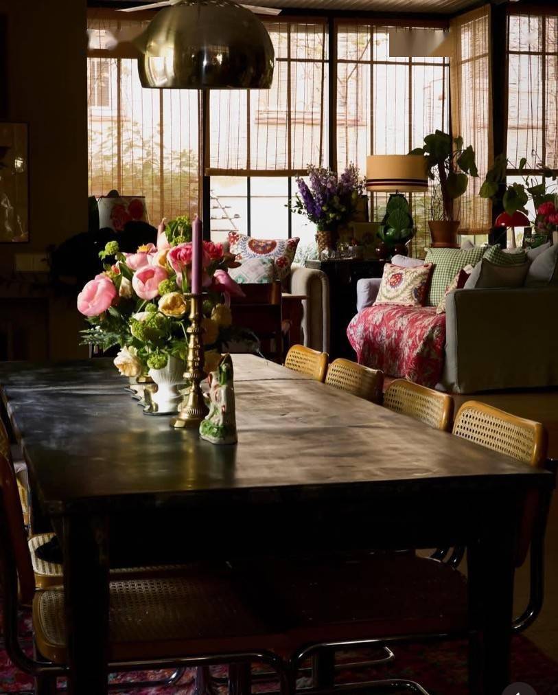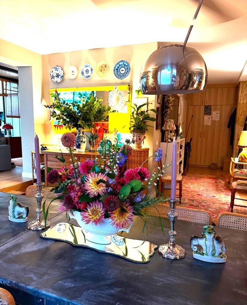 Sally是一名有20年经验的花艺师,在西班牙马德里有自己的插花艺术商店,作品在很多品牌的发布会,以及个人婚礼等重要场合出现,收到众多喜爱。她的家,也延续了别具一格的插花艺术风格,浓郁热烈,生机勃勃,个性感非常强烈,有独属于自己的韵味。