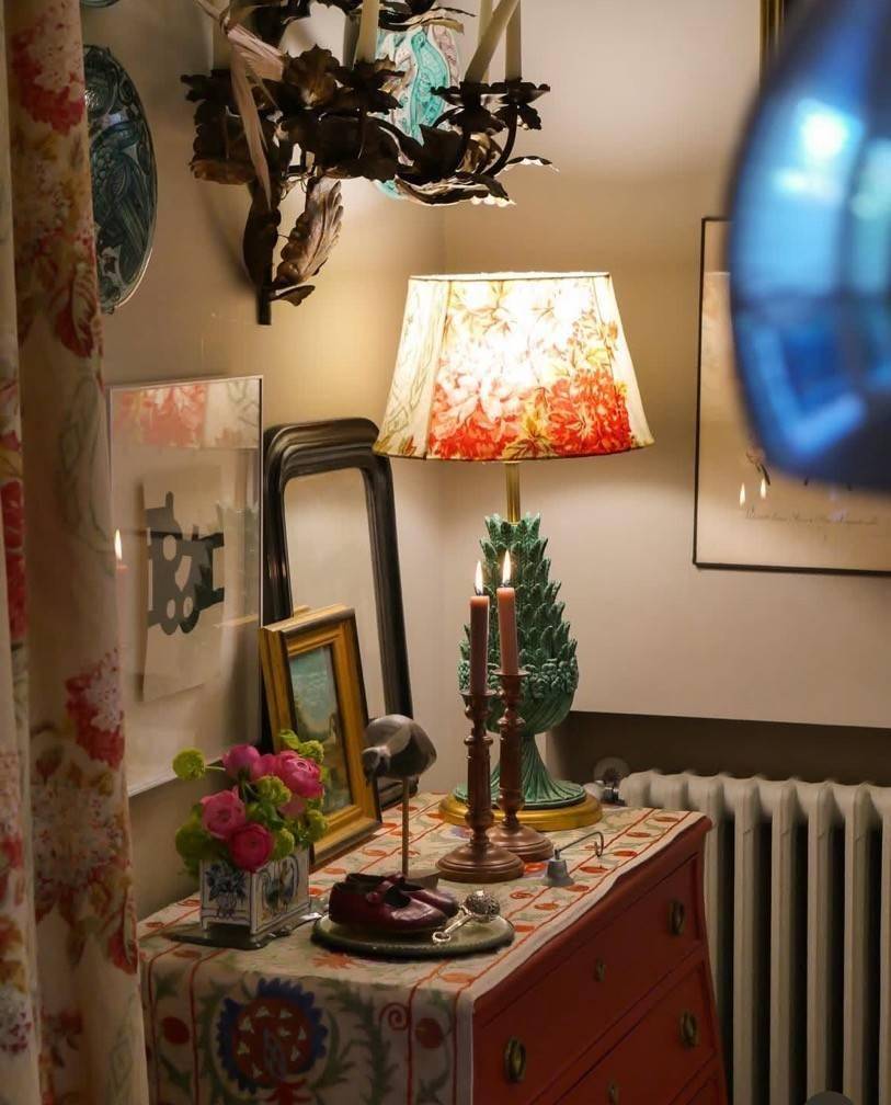 家具是一直陪伴的,摆件等小物件是精心收藏的,灯具、枕头床品和窗帘是新添加的,还有60、70年代风格的摩洛哥风情挂毯,加上不可缺少的花朵,组成了主人心中理想的休息空间。