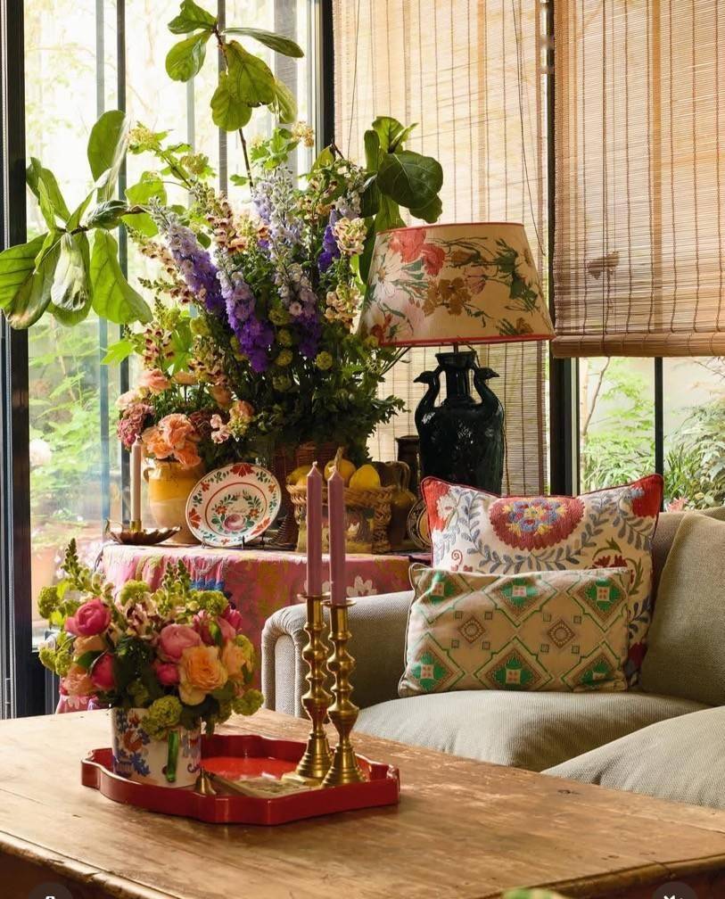 如果你认识有点难过的人,不要犹豫,送给她们鲜花吧。被美丽花朵包围的生活,充满了美,充满了色彩,以至于忘却那些并不没有那么重要的令人烦恼的事情。女主的家里,不仅鲜花无处不在肆意绽放,连抱枕、灯罩、瓷器都有花的风采。