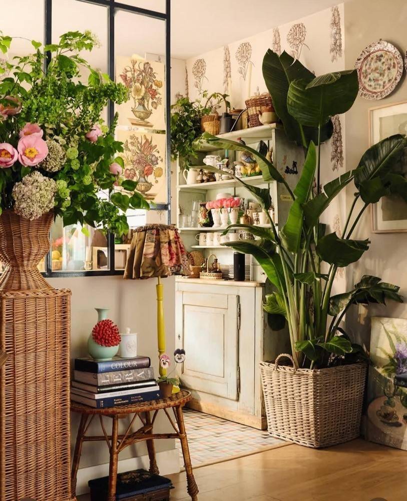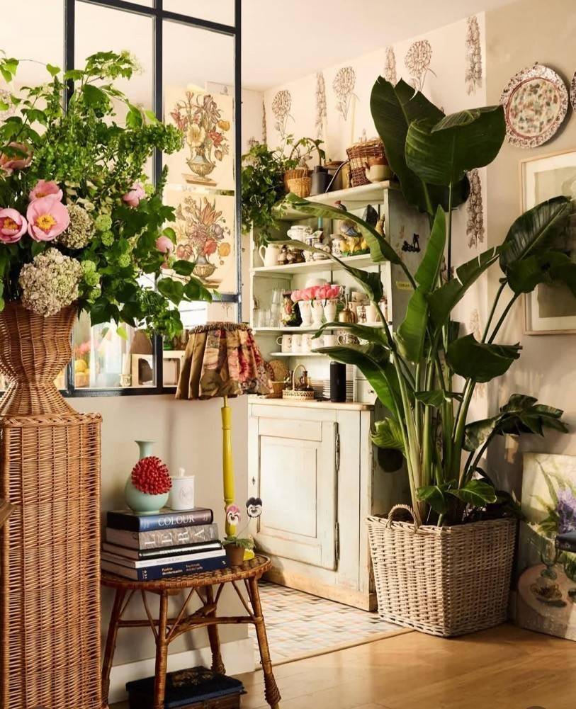 对植物和鲜花的探索让这个家的每一个角落都是那么的鲜活。花朵壁纸搭配上老旧的柜子,花卉图案的瓷器,加上随处都是的鲜花和绿植,通过展现花和植物的极致美感与生命力,创造了一个充满活力的空间。