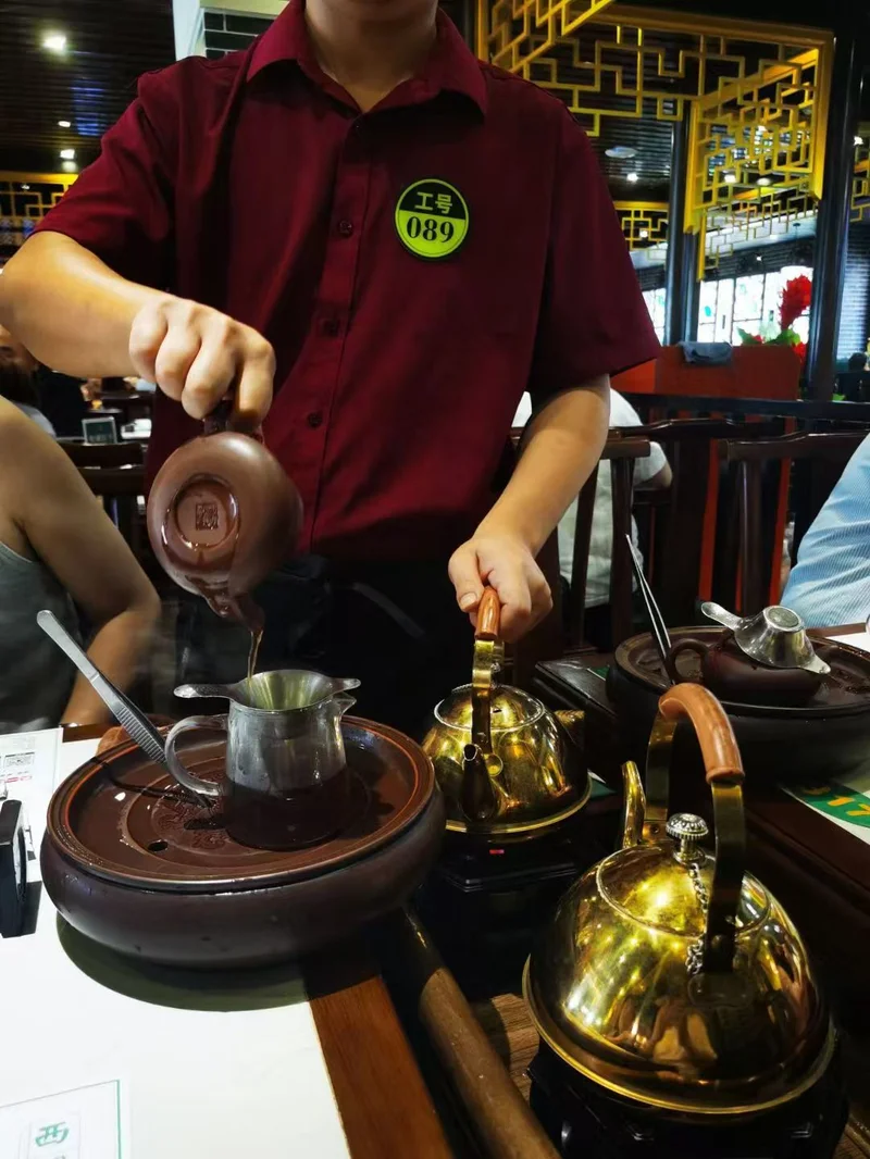 服务细节到位,服务员着中式装,添茶换碟及时;多数门店提供普洱、铁观音、菊花茶还有罗汉果等基础茶品。