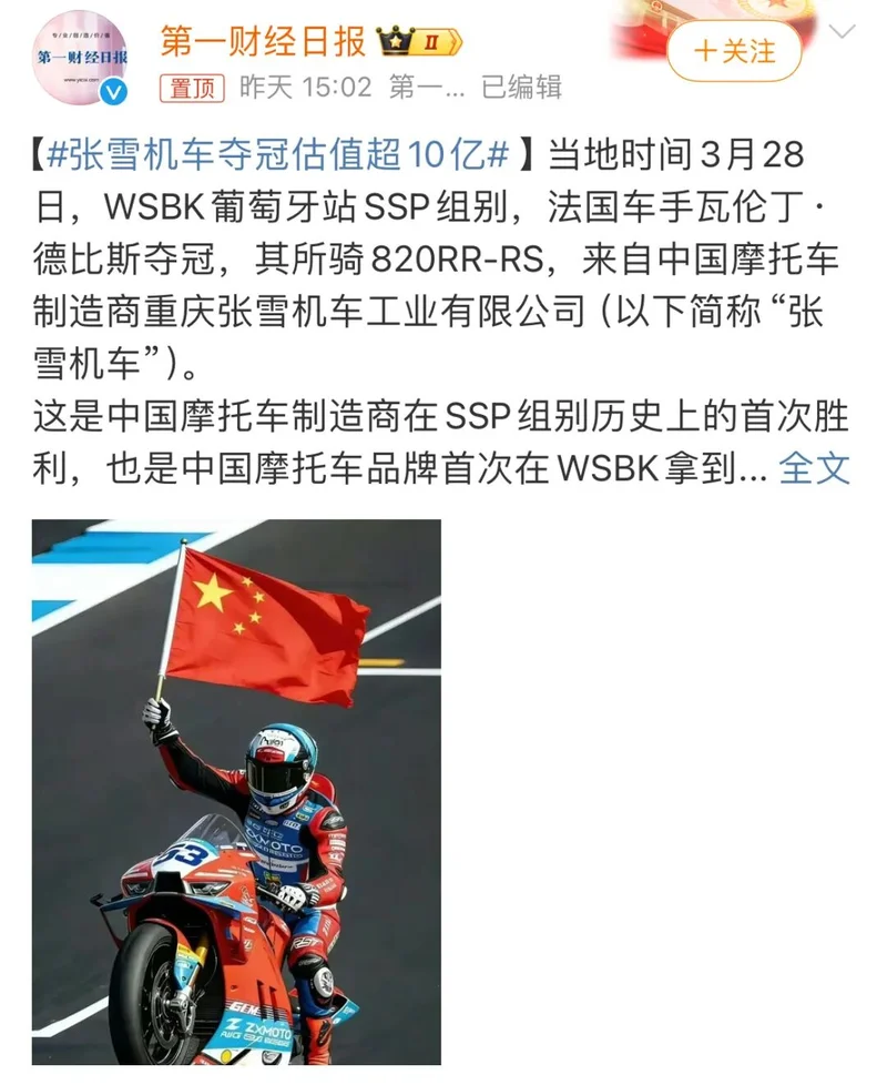 这一战,张雪机车证明了“中国造”也能又快又稳,预订单瞬间破万;