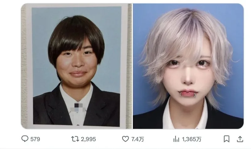 这位日本女偶像叫雨宫Hiito(雨宫ひいと),在X上晒了自己国中时期的素颜照和现在的对比,结果直接炸了——观看数冲破一千万。