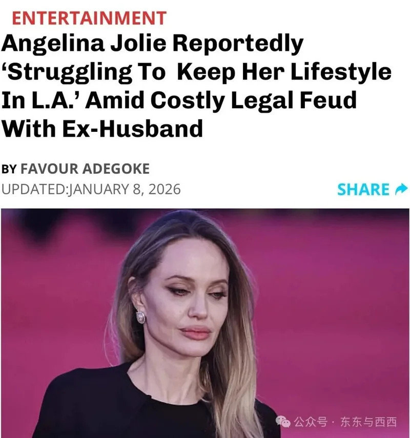 瓜民可能不信,朱莉身家1.2亿美元,还会没钱花?外媒称她“不至于破产,但现金流很成问题,她不是泰勒·斯威夫特级别的富豪”。