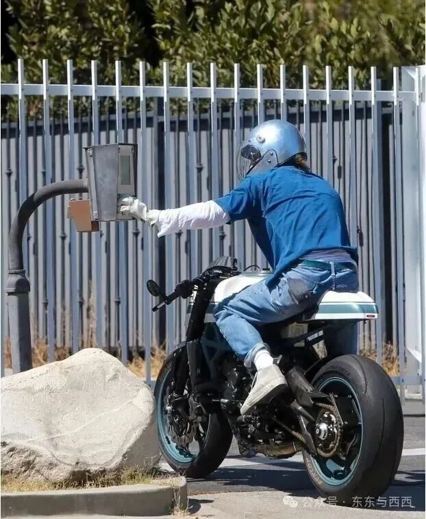 刚离婚时,皮特骑车去朱莉家看孩子。