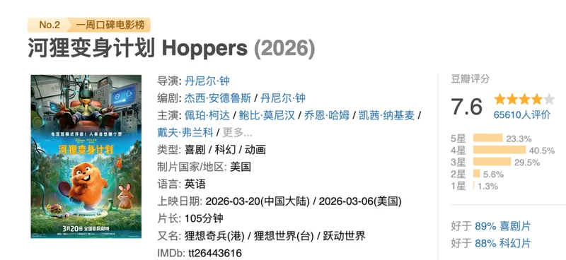 因此,内地3亿的票房,几乎是皮克斯的受众底盘了,但按照目前来看,《河狸变身计划》连1.5亿都破不了了,有点可惜7.6分的评分了。