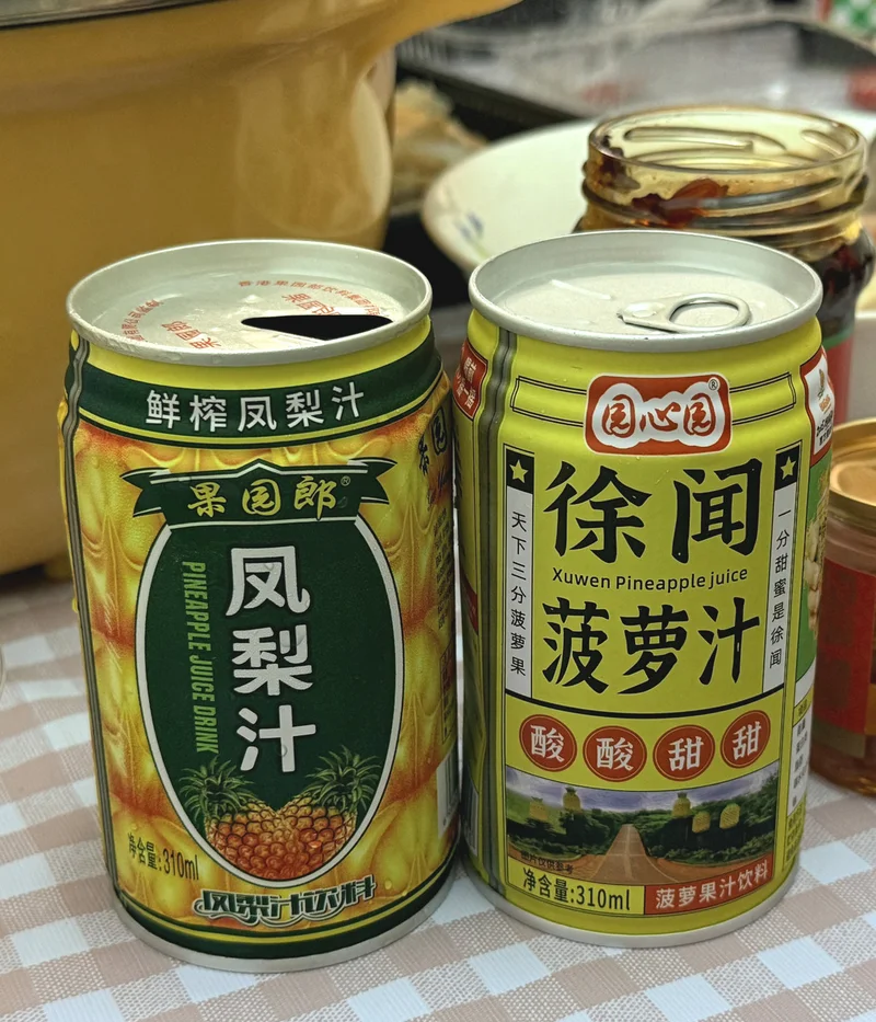 徐闻是广东湛江的 “热带水果天堂”,得益于火山红土、充足日照的自然条件,出产的水果以甜度高、汁水足、香气浓闻名。其中菠萝和凤梨,也闻名遐迩。春节女儿一家回乡,最大的收获是吃新鲜走地鸡和农家菜,同时托了两箱徐闻罐装果汁回家,有菠萝有凤梨。